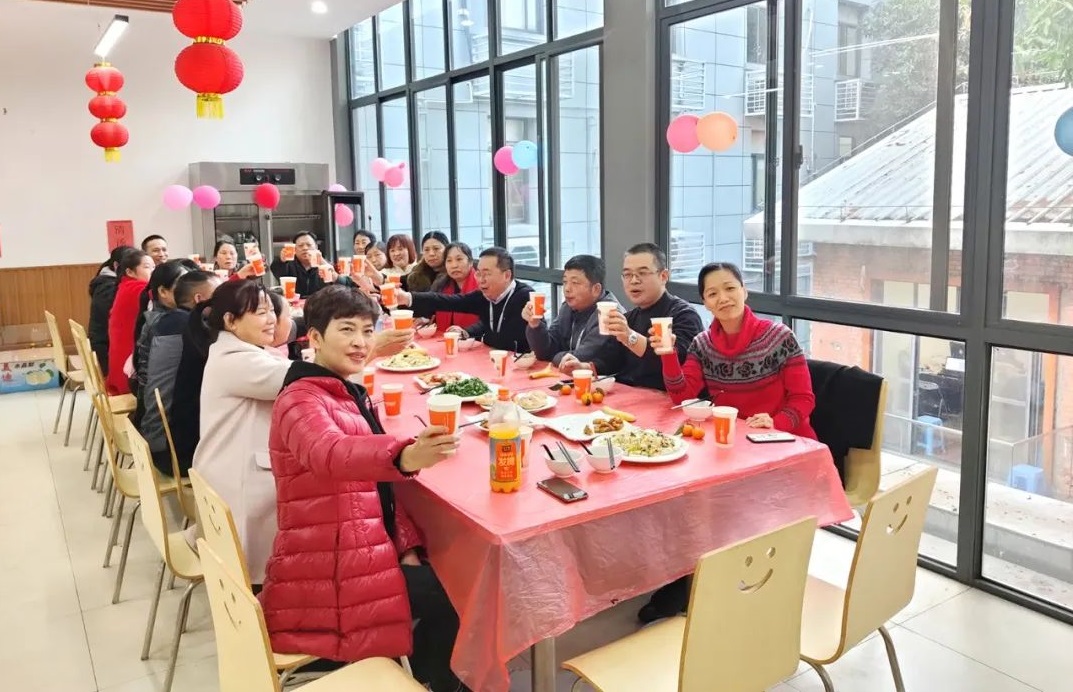 春節(jié)前夕,醫(yī)院組織護理員聚餐,院領(lǐng)導與護理員圍坐一起嘮家常,感謝他們過年期間堅守照護崗位。