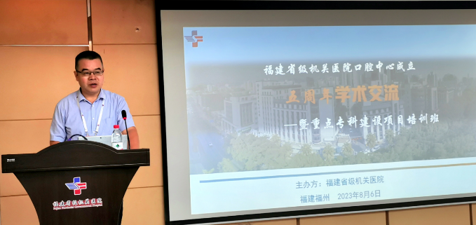 此次會議分兩部分進(jìn)行,第一部分的重點專科建設(shè)培訓(xùn)環(huán)節(jié)中,福建醫(yī)科大學(xué)附屬口腔醫(yī)院副院長程輝博士、副院長于皓博士、我院原副院長潘在興教授,分別以《種植修復(fù)仿生基臺的研發(fā)和臨床評價》《口腔省級重點專科建設(shè)》《口腔門診醫(yī)療糾紛防范—醫(yī)患溝通》為題,為參會人員進(jìn)行精彩的授課。