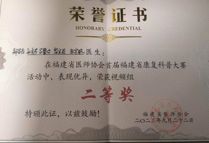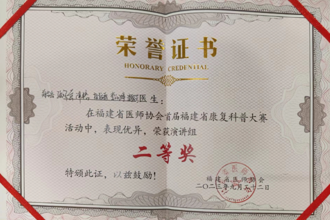 本次獲獎是對我院康復科健康科普工作的高度肯定,更是鞭策與激勵。接下來,康復科將以此為契機,大力推進全院康復能力建設,不斷提升康復水平,切實提升全民健康素質,助力健康中國建設。