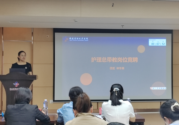 述職競聘演講會(huì)上,競聘人員個(gè)個(gè)精神飽滿、思路清晰、言語流暢,她們用精美的幻燈片,結(jié)合多年護(hù)理工作經(jīng)驗(yàn),分別從個(gè)人簡介、競聘優(yōu)勢、工作設(shè)想等方面進(jìn)行了全方位的展示,紛紛表達(dá)了自己對(duì)護(hù)理管理工作和崗位的履職、認(rèn)知和理解,用心彰顯了努力做好護(hù)理工作的信心和決心,充分展示了機(jī)關(guān)醫(yī)院新一代護(hù)理骨干的綜合素質(zhì)和職業(yè)風(fēng)采。