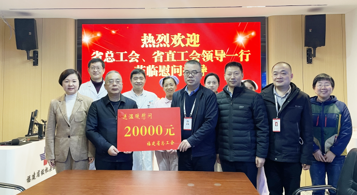 2月7日,在新春佳節(jié)即將來臨之際,福建省總工會、省教科文衛(wèi)體工會工委主任郭立新一行蒞臨我院看望慰問了奮戰(zhàn)在一線醫(yī)護人員代表,并送上慰問金以及新春美好祝福。省直機關工委委員,省直機關工會主席陳雁、省教科文衛(wèi)體工會工委二級調研員左修坤和翁建清以及省直機關工會四級調研員廖孝輝等陪同慰問。黨委副書記(主持工作)、院長章文杰,黨委副書記、工會主席黃純和總會計師陸守坤、相關職能科室負責人參加座談。