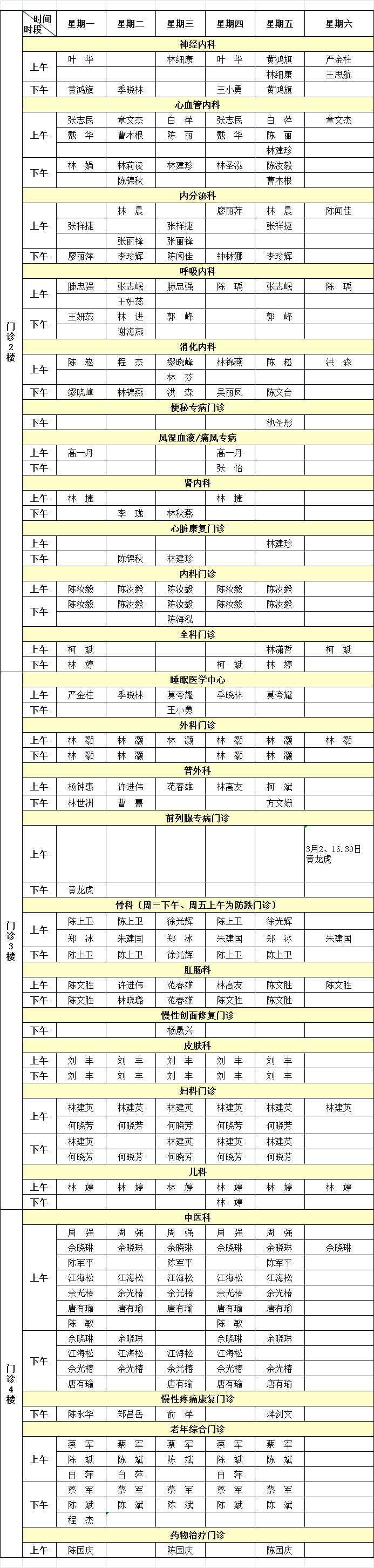 福建省級機(jī)關(guān)醫(yī)院2024年3月專家門診排班表來啦!有需要的小伙伴趕緊收藏。