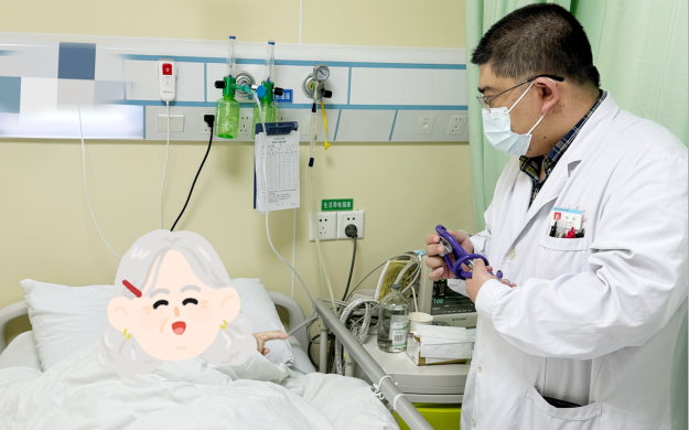 今年3月初,吳奶奶在家中進(jìn)食不慎誤吸,誘發(fā)慢性阻塞性肺病急性發(fā)作,出現(xiàn)咳嗽、咳痰、胸悶氣急、乏力等癥狀,連續(xù)多日食不下咽,身體極度虛弱。子女們聯(lián)系了我院全科醫(yī)學(xué)科柯斌副主任醫(yī)師,將她送到醫(yī)院急診就診,結(jié)合肺部CT和化驗(yàn)結(jié)果,初步診斷為肺部感染、呼吸衰竭合并心力衰竭,柯斌醫(yī)生立即為其安排床位住院治療。