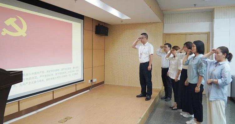 黨委副書記(主持工作)、院長章文杰為新發(fā)展黨員佩戴黨徽,并囑咐他們要牢記黨員身份責(zé)任,積極踐行初心使命,時(shí)刻以黨員的標(biāo)準(zhǔn)嚴(yán)格自律、積極工作,努力奮斗、敬業(yè)奉獻(xiàn),為醫(yī)院的高質(zhì)量發(fā)展貢獻(xiàn)力量。在黨旗下,章文杰帶領(lǐng)全體黨員重溫入黨誓詞,鏗鏘誓言彰顯對黨的忠誠與熱愛,堅(jiān)定為共產(chǎn)主義和人民衛(wèi)生健康事業(yè)奮斗終身的決心。
