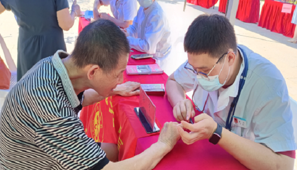 由我院黨員志愿者組成的義診小隊親切地為居民提供義診服務(wù)。針對老年人和慢性病患者,醫(yī)務(wù)志愿者們還對居民進(jìn)行一對一答疑解惑,為他們測量血壓、詳細(xì)了解問詢者的病史和用藥情況,為其制定個性化的治療方案。