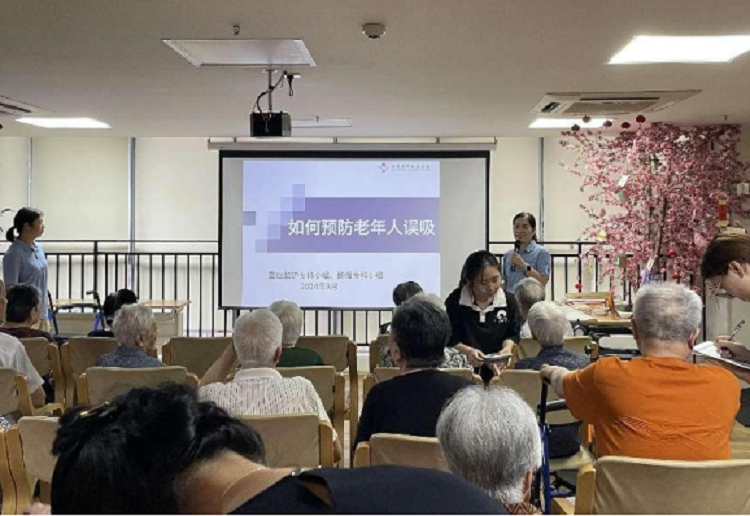 由于老年人可能存在咀嚼能力下降、咽喉反射減弱、神經(jīng)系統(tǒng)退化等現(xiàn)象,因此容易導致誤吸的發(fā)生。重癥與腫瘤??平M成員們聚焦老年人誤吸風險因素,深入基層養(yǎng)老院,向老年人傳授預防誤吸的知識和技巧。