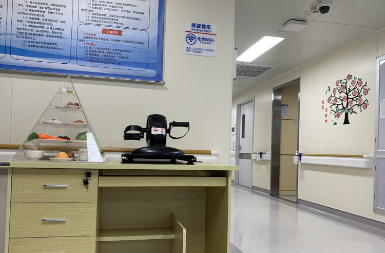 病房中除配備有電視機(jī)外,還配備有康復(fù)訓(xùn)練儀,滿足老年住院患者康復(fù)需求。