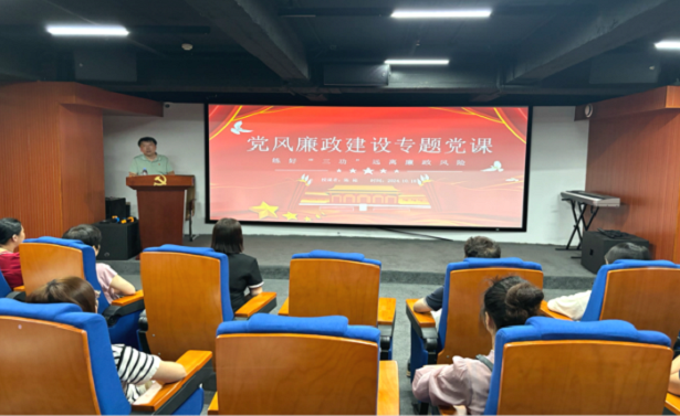 活動(dòng)中,黨員們還集體觀看了廉政警示教育片《零容忍》的部分片段,進(jìn)一步強(qiáng)化了廉潔自律意識(shí),深刻體會(huì)到廉潔文化的重要性。第五黨支部書記陳崧還做了《黨風(fēng)廉政建設(shè)專題黨課》,就加強(qiáng)黨員練好思想上的“內(nèi)功”,守住廉潔自律的“防功”,劃清公與私的“硬功”做了詳細(xì)闡述,增強(qiáng)拒腐防變的能力,營造風(fēng)清氣正的良好氛圍。