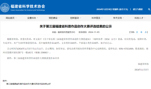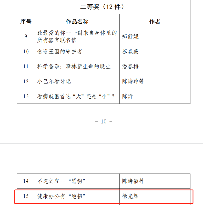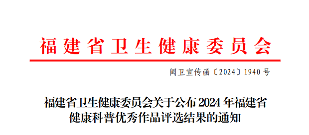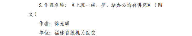 外科徐光輝科普文章《健康辦公有“絕招”》獲第三屆福建省科普作品創(chuàng)作大賽二等獎(jiǎng)。