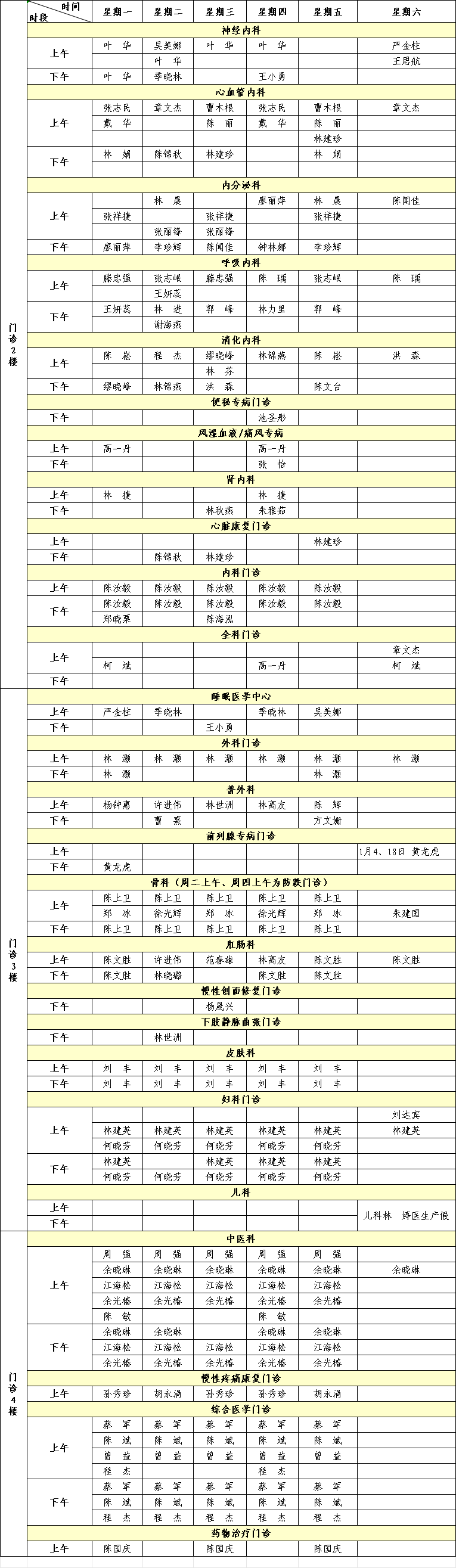福建省級(jí)機(jī)關(guān)醫(yī)院2025年1月專家門診排班表來啦!有需要的小伙伴趕緊收藏。