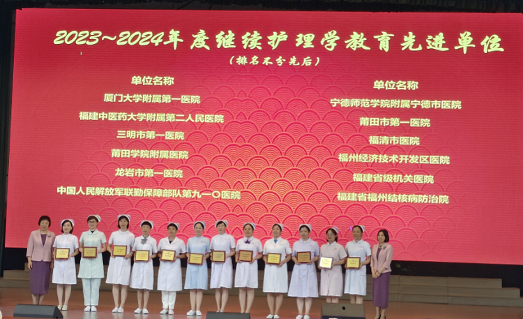 5月9日下午,福建省護(hù)理學(xué)會(huì)召開(kāi)慶祝2025年國(guó)際護(hù)士節(jié)暨頒獎(jiǎng)大會(huì)。我院獲福建省2023-2024年繼續(xù)護(hù)理學(xué)教育先進(jìn)單位稱(chēng)號(hào),這是我院護(hù)理部繼評(píng)“福建省巾幗文明崗”之后的又一榮譽(yù)。徐艷同志榮獲福建省“小鷹”護(hù)理基金獎(jiǎng)。