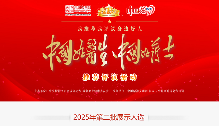 由中央精神文明建設辦公室和國家衛(wèi)生健康委聯合開展的“我推薦我評議身邊好人”之“中國好醫(yī)生、中國好護士”第二批典型人物網上評議環(huán)節(jié)正式啟動。經廣大群眾熱情推薦線索、各省(區(qū)、市)衛(wèi)生健康委認真審核報送,2025年第二批共有149位展示人選接受評議。國家衛(wèi)生健康委官網及“健康中國”新媒體平臺進行“中國好醫(yī)生、中國好護士”人選事跡展示和評議。