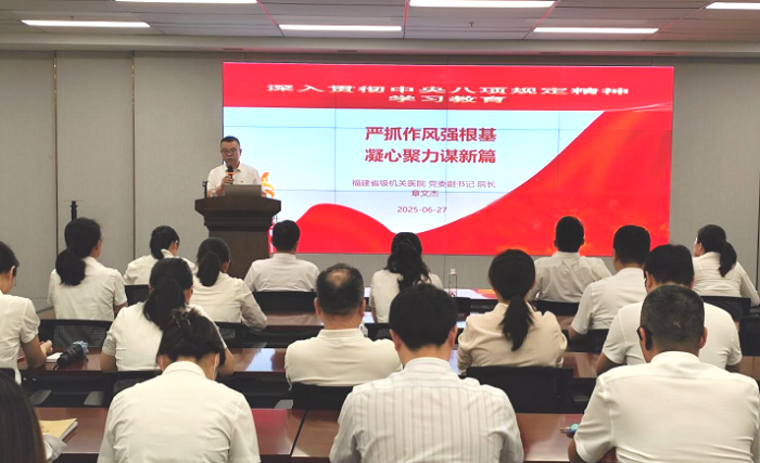 為慶祝中國共產(chǎn)黨建黨104周年,進(jìn)一步開展深入貫徹中央八項(xiàng)規(guī)定精神學(xué)習(xí)教育,6月27日下午,福建省級機(jī)關(guān)醫(yī)院黨委舉辦慶“七一”系列活動暨深入貫徹中央八項(xiàng)規(guī)定精神學(xué)習(xí)教育專題黨課。會議由副院長嚴(yán)金柱主持,院黨政領(lǐng)導(dǎo)班子成員、各支部黨務(wù)干部及黨員代表、參加宣誓新發(fā)展黨員、發(fā)展對象、入黨積極分子等參加。