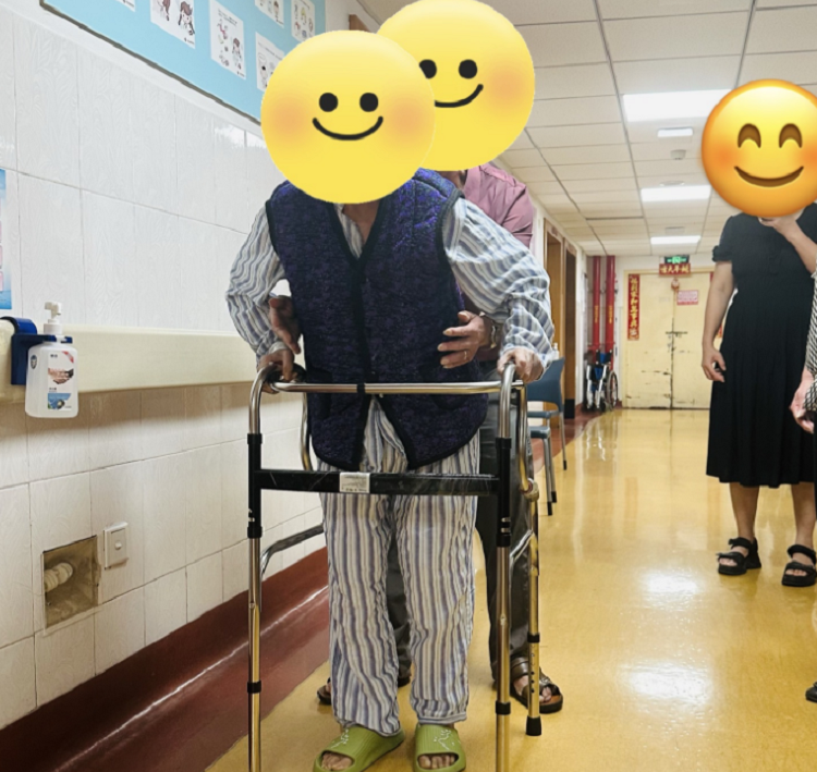 術(shù)后在醫(yī)護(hù)人員的指導(dǎo)下,她開始進(jìn)行髖關(guān)節(jié)周圍肌肉的鍛煉。術(shù)后第3天,在助行器的輔助下,謝奶奶勇敢地嘗試坐起并在床邊站立;術(shù)后第7天,在康復(fù)治療師的陪同下,她邁出了短距離行走的第一步。經(jīng)過2周的精心護(hù)理與系統(tǒng)康復(fù)訓(xùn)練,在家人的保護(hù)下,謝奶奶已能較為熟練地使用助行器在病房內(nèi)行走,左髖關(guān)節(jié)活動度逐漸恢復(fù),疼痛也明顯減輕。