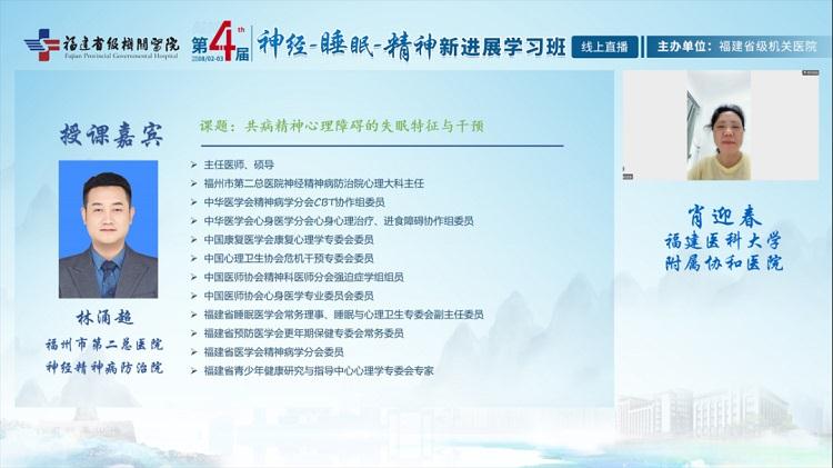 福州市第二總醫(yī)院神經(jīng)精神病醫(yī)院林涌超教授分享了合并精神心理障礙的失眠特征及干預(yù),通過典型案例分析總結(jié)了共病精神心理障礙的睡眠特點(diǎn)。