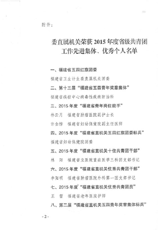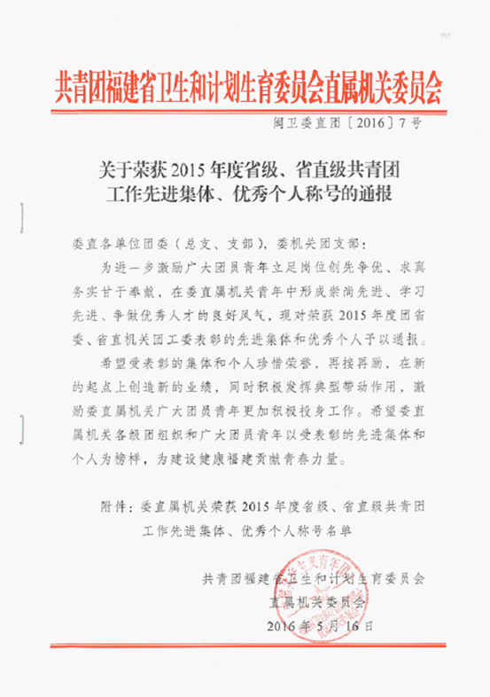 我院曹熹獲“第二屆福建省直機關五四青年獎章”