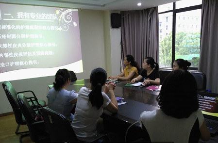 7月份我院傷口、造口??菩〗M進行小組內(nèi)收集的臨床個案分享:分別由外科二區(qū)李麗欽帶來的失禁性皮炎的個案分享和內(nèi)科二區(qū)楊婧帶來的壓瘡的護理個案分享。