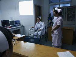 2017年9月,在七樓示教室,舉行了一場(chǎng)別開(kāi)生面的實(shí)習(xí)生護(hù)理教學(xué)查房。來(lái)自福建衛(wèi)生職業(yè)技術(shù)學(xué)院的三十多名護(hù)理實(shí)習(xí)生以及張虹督導(dǎo)、各個(gè)科室總帶教齊聚于此,下午四點(diǎn)教學(xué)查房正式拉開(kāi)帷幕。