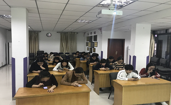 照片里的每個人都捧著手機專心致志“玩著”,你一定很納悶吧?告訴你這是在考試,你相信嗎?考試不用筆,沒有試卷,只要帶上手機,開通網(wǎng)絡。新奇吧!